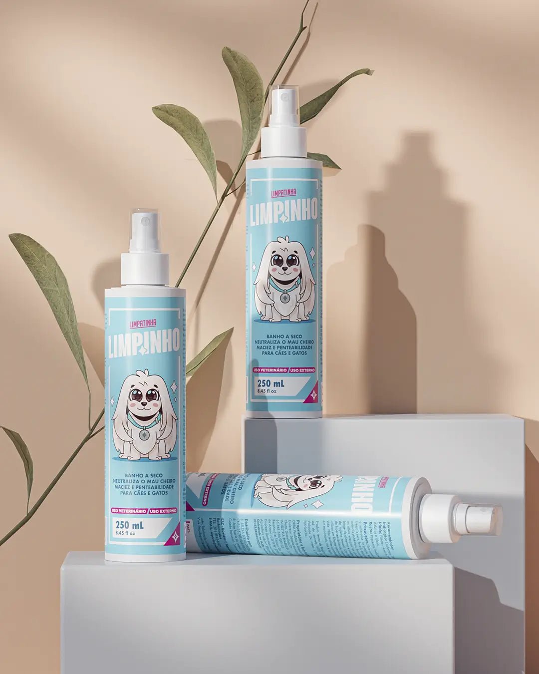 Conheça o Limpinho, o banho a seco 3 em 1 que proporciona limpeza, hidratação e perfumação em um único produto.